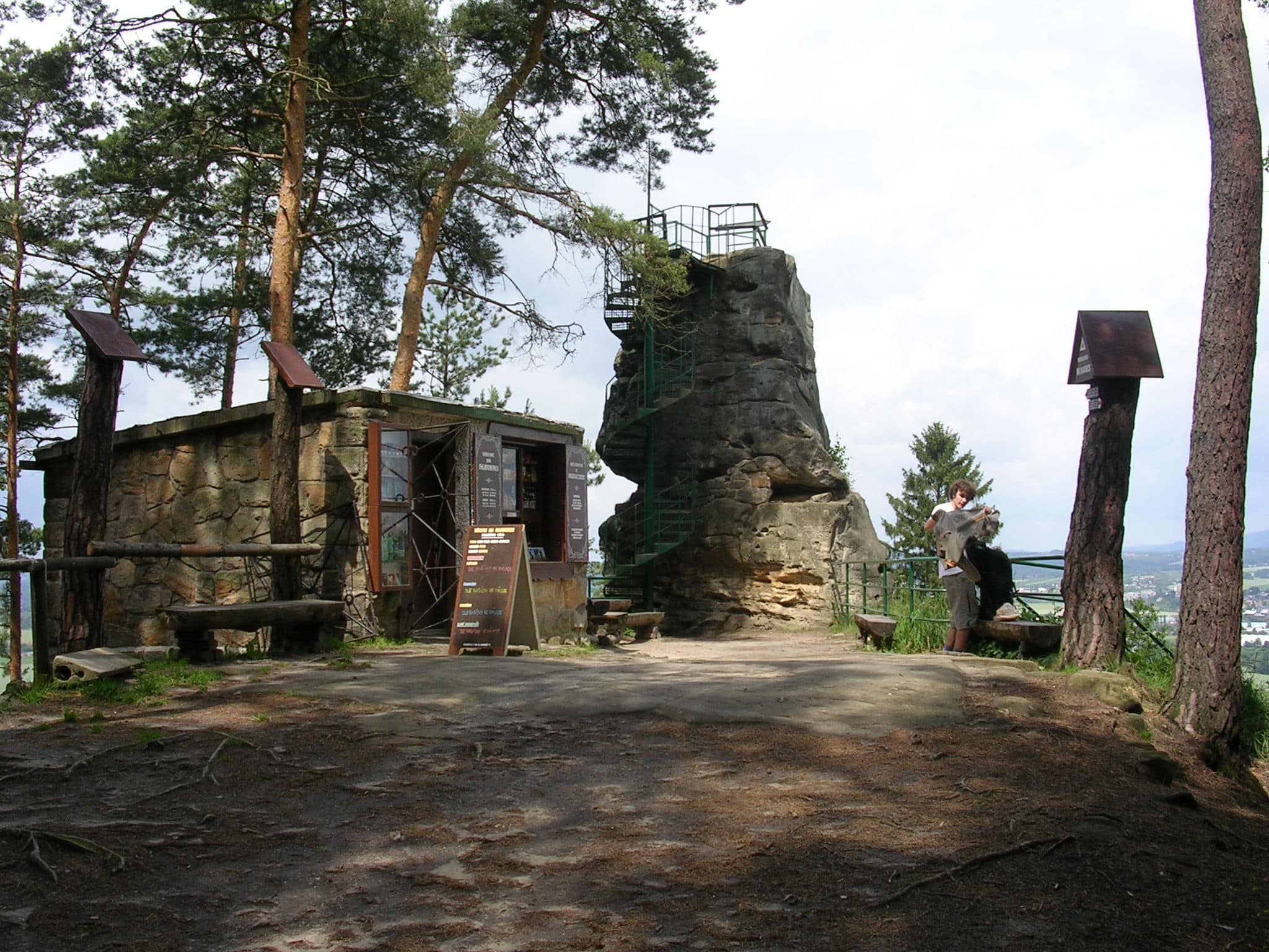 Osamocená pískovcová skála (380 m) na severozápadním okraji Hruboskalského skalního města, ze zajištěné plošiny široký výhled do okolí. Vyhlídka se nachází nedaleko hradu Valdštejn a je přístupná po 36 železných točitých schodech. Z jejího vrcholu je hezký výhled na okolní krajinu – Turnov, Kozákovský hřeben, Ještědský hřeben, Jizerské hory, Bezděz a Ralsko.